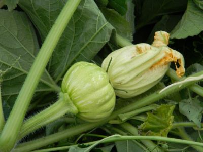 Un pied de citrouille possède des fleurs mâles et des fleurs femelles, la fécondation a lieu quand la floraison des 2 se fait en même temps.
